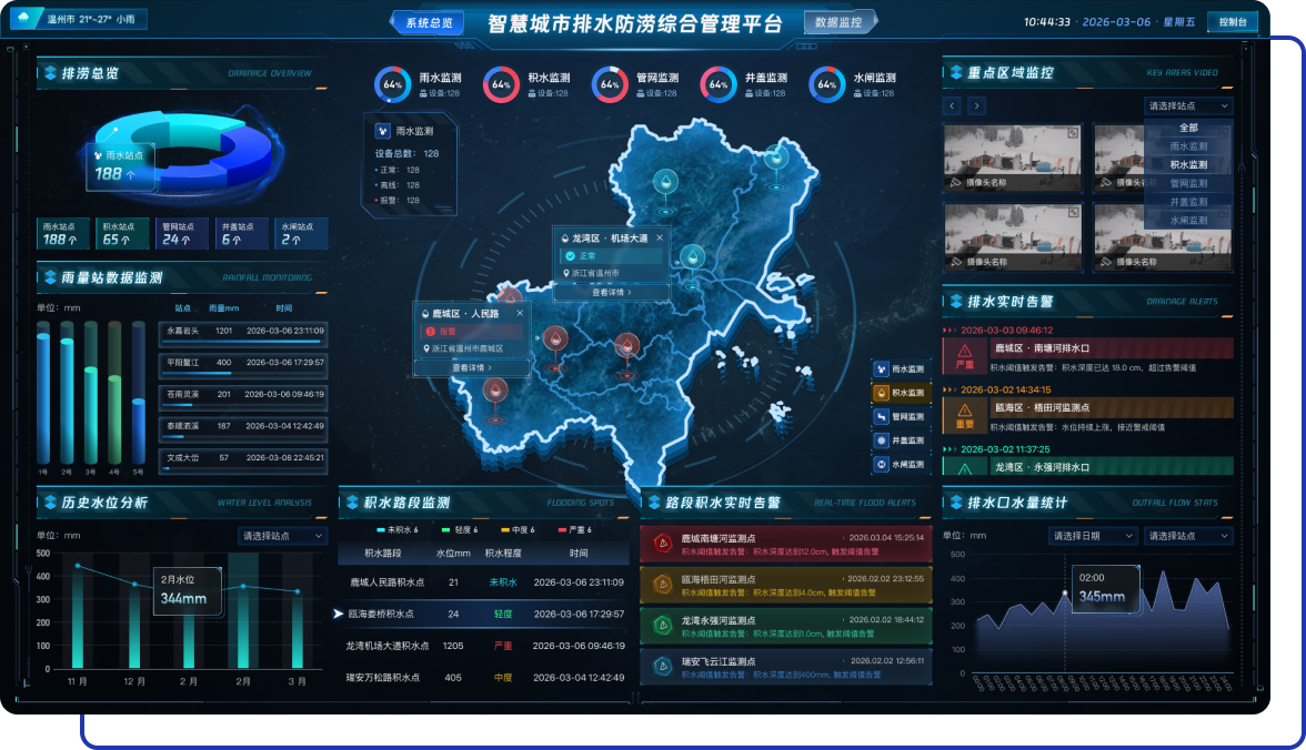 围绕城市易涝点、排水设施与汛期应急场景,构建“监测一预警一调度一处置一复盘”一体化能力,全面提升城市排水防涝响应效率与精细化治理水平。