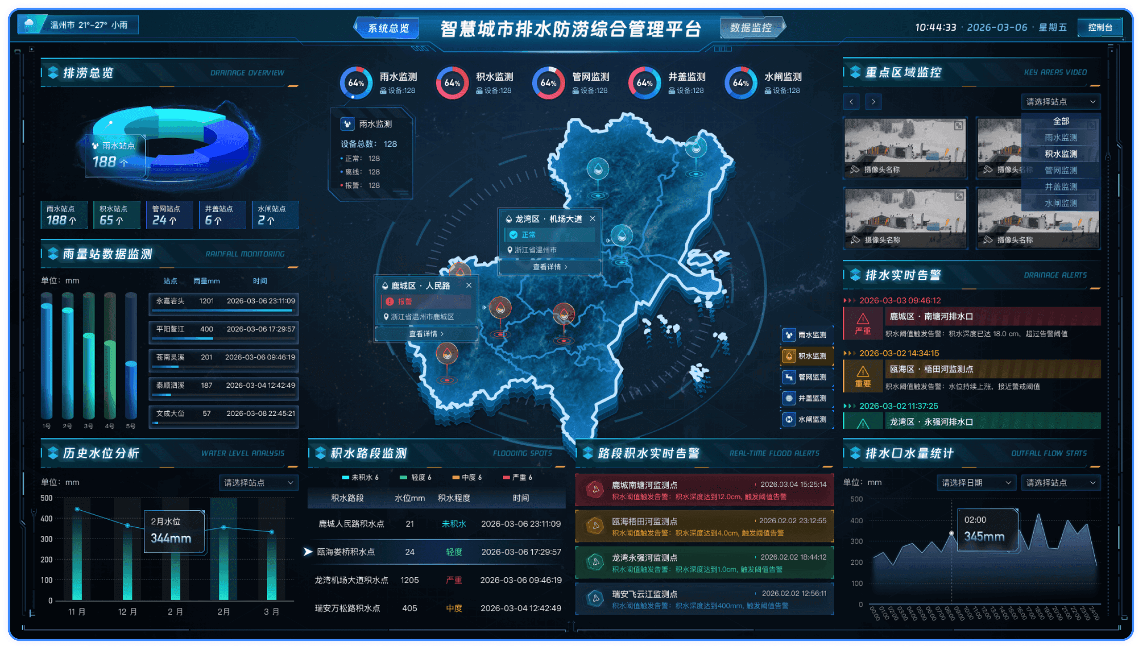 整合管网、泵站、雨水口、积水点等各类排水设施,统一接入水位、流量、设备状态及视频等数据,实现排水系统全要素在线监测。